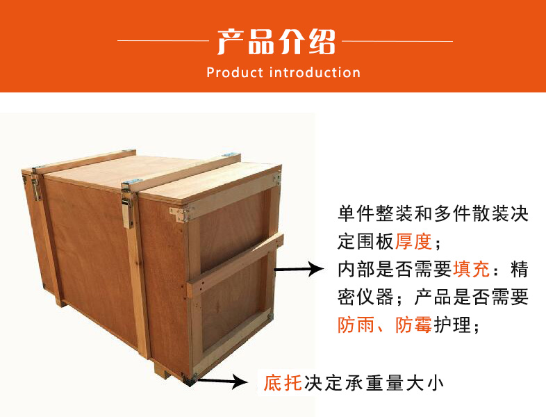 石家莊辰翔木業有限公司發展至今歷經了十一年的歷程,主要經營產品:木箱,木包裝箱,木質包裝箱,實木包裝箱,復合板包裝箱,花格箱,出口包裝箱,鋼邊箱,木托盤等各種大中小型機械設備包裝。我公司秉承以誠為本質量至上包您所想裝您所用的經營理念,堅持"客戶為主"的原則為廣大客戶提供優異的服務。望廣大客戶前來洽談!